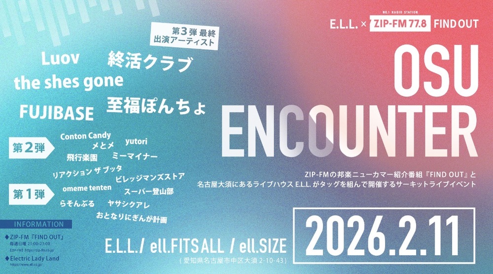 OSU ENCOUNTER LIVE SCHEDULE 2026/02/11(水) ell.FITS ALL チケット: 前売り¥4,000 タイムテーブルは解禁‼️ メとメは 📍ell.FITS ALL 🕐16:00〜 チケットはこちらから URLをコピーする 報告する